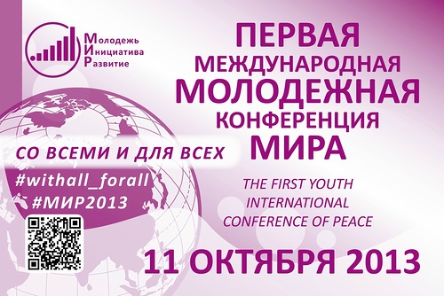 11 октября молодежная общественная организация «МИР» проведет в Санкт-Петербурге Первую Международную Молодежную Конференцию Мира, призванную активно содействовать объединению молодежи в деле миротворчества. Место проведения – Санкт-Петербургский Планетарий, время начала – 11:00.