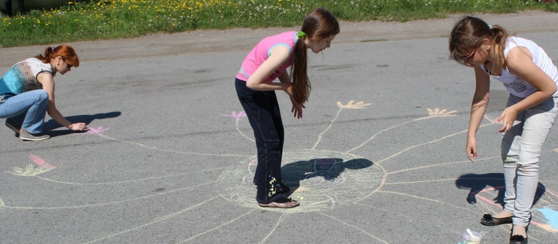 Праздничный фестиваль рисунков на асфальте «Ура, каникулы!», организованный подростково-молодежным центром «Калининский», был посвящен Дню защиты детей.
