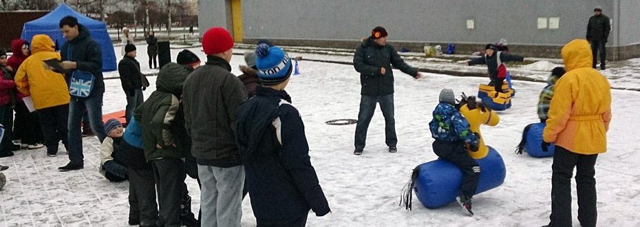 На площадке у Центра спорта (ул. Демьяна Бедного, д.9) специалисты Дома молодежи «Атлант» Ольга Шевцова и Александра Китаева приглашали всех стать участниками веселых спортивных эстафет. Участники соревновались в прыжках на «лошадях», бегали в огромных ботинках и других веселых конкурсах.