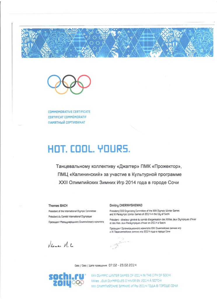 студия современных танцев «Джаггер» ПМК «Прожектор», под руководством Святослава Мельникова, приняла участие в Олимпийской культурной программе;
