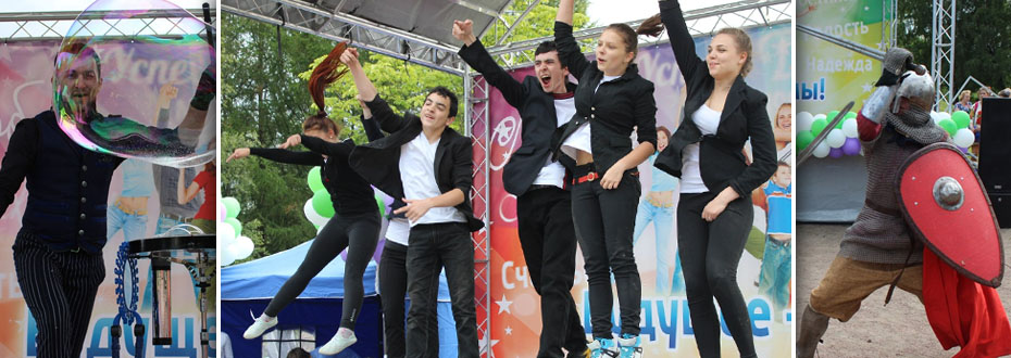 Для жителей Калининского района, выступали лучшие вокальные коллективы подростково-молодежного центра «Калининский», студии современных танцевальных направлений. На сценической площадке проходили показательные выступления спортсменов-велотриалистов, юных артистов цирка, битва рыцарей и шоу мыльных пузырей.