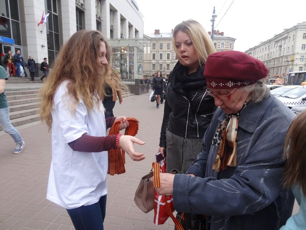 Все предпраздничные дни, 6, 7, и 8 мая наши добровольцы раздавали георгиевские ленточки у станций метро Академическая, Гражданский проспект, Девяткино, Политехническая, пл. Мужества, пл. Ленина.