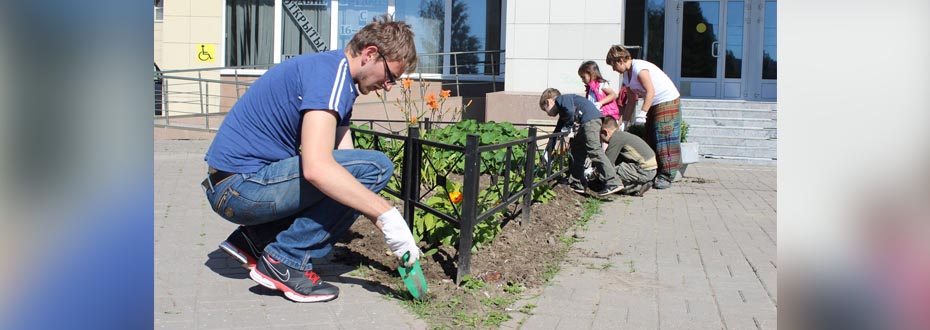 Тематика смены – экология и забота о территориях, поэтому волонтеры помогают сделать Калининский район чище и уютнее.