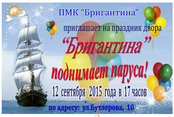 12 сентября в 17.00 на внутридворовой площадке по адресу: ул. Бутлерова, д.10 клуб «Бригантина» откроет новый сезон ярким уличным праздником.