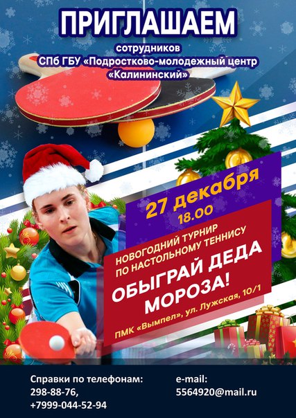 27 декабря в 18.00 в ПМК Вымпел, ул. Лужская, д.10.