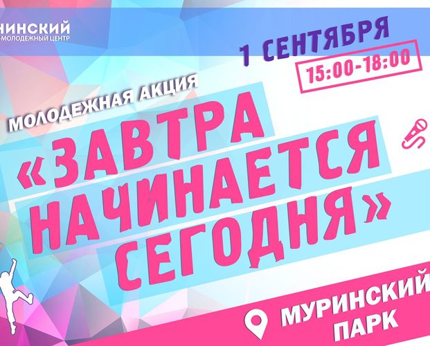 Друзья, приглашаем всех отлично провести время вместе с нами. Ведь мы открываем новый сезон в Муринском парке молодежной акцией «Завтра начинается сегодня». Будет классно!