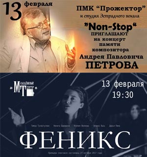 Студия «Non-Stop» приглашает на музыкальный вечер памяти композитора Андрея Петрова. Прозвучат прекрасные песни из советских кинофильмов, мы вспомним биографию и этапы творческого пути одного из величайших композиторов современности.