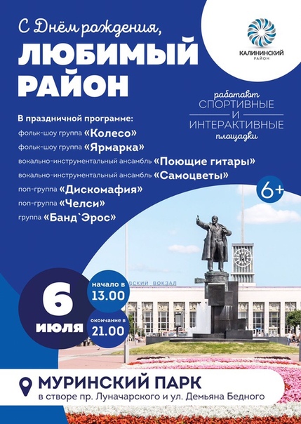 Приглашаем 6 ИЮЛЯ в Муринский парк на День рождения Калининского района! Калининскому исполняется 83 года!
