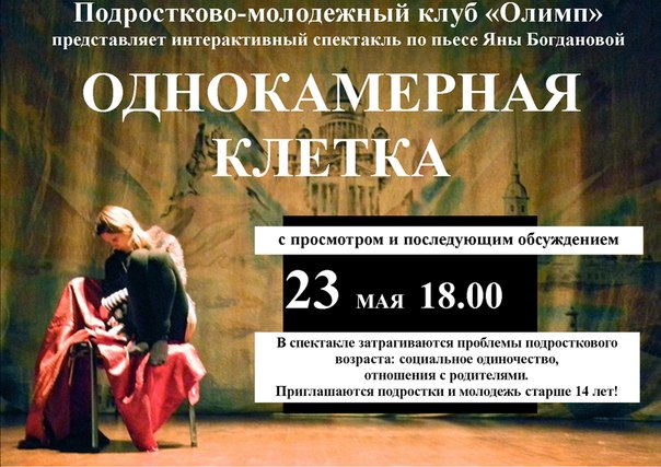 23 мая 2013 г. в 18.00 в ПМК «Олимп» (ул. Академика Байкова, д. 15), пройдет интерактивный спектакль «Однокамерная клетка».
