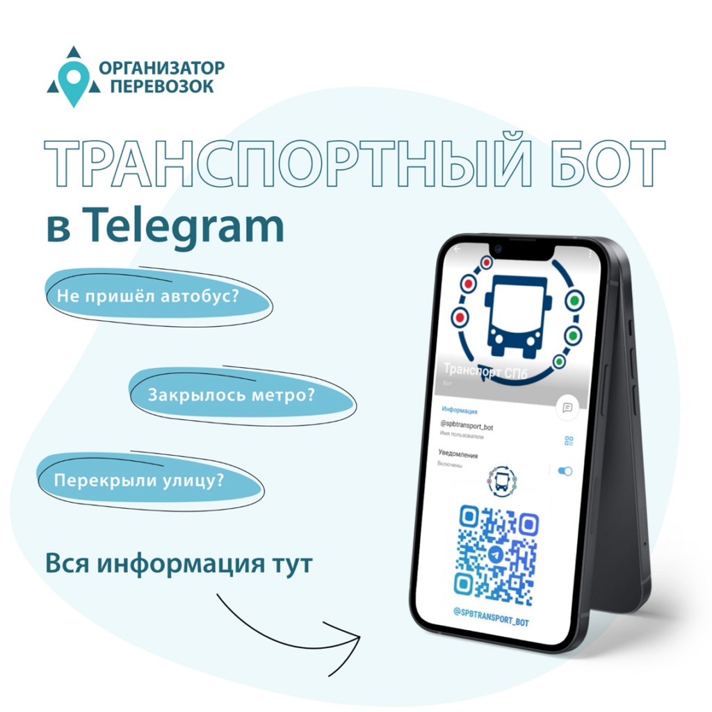 СПб ГКУ «Организатор перевозок» запустил социальный проект «Чат-бот» для Telegram. Он информирует пользователей об изменениях в маршрутах наземного транспорта и метро.