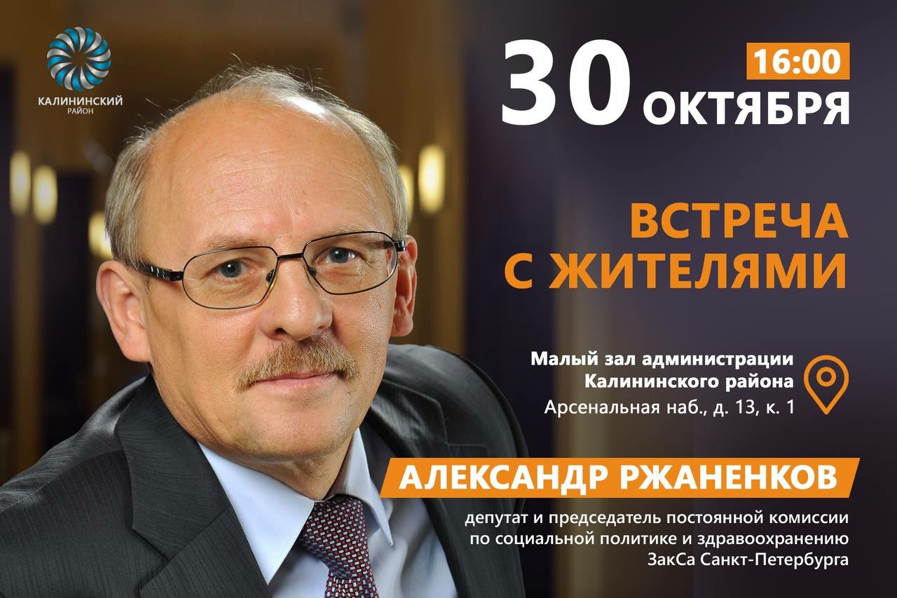 В целях совершенствования системы информирования граждан и структур гражданского общества о деятельности законодательных органов государственной власти Санкт-Петербурга по наиболее важным и социально-значимым аспектам их деятельности, депутат и председатель постоянной комиссии по социальной политике и здравоохранению Законодательного Собрания Санкт-Петербурга 7 созыва Ржаненков Александр Николаевич проводит встречу с жителями Калининского района с последующим личным приемом граждан 30.10.2025 в 16.00 по адресу: Арсенальная наб., д. 13/1, Малый зал.
