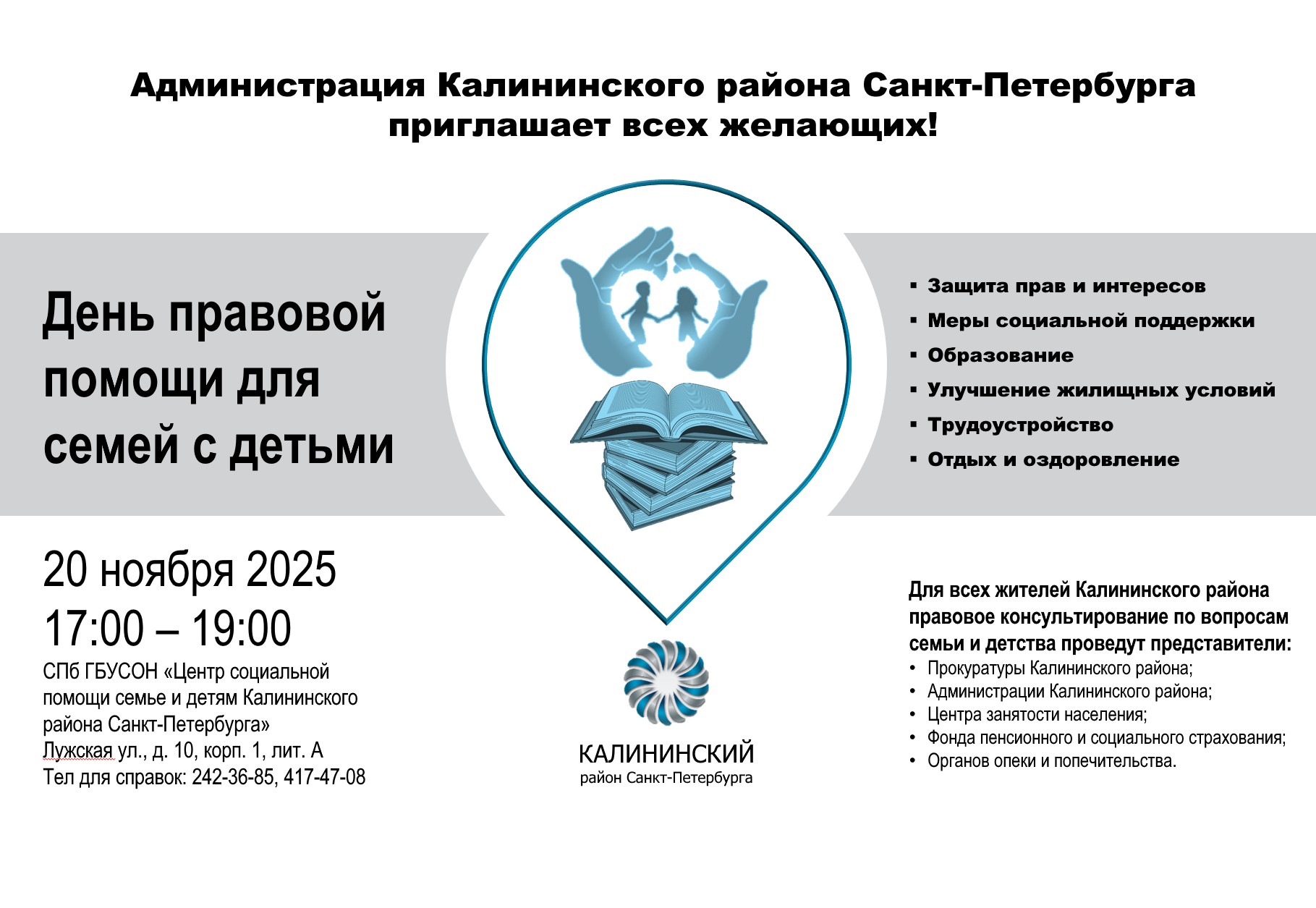 20 ноября 2025 г ода (с 1 7:00-до 19:00 ) на базе СПБ ГБУСОН «Центр социальной помощи семье и детям Калининского района» по адресу :